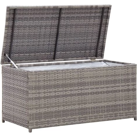 Suchen Sie eine attraktive und vielseitige Aufbewahrungsmöglichkeit für draußen? Dann ist diese Aufbewahrungsbox aus Poly-Rattan die ideale Wahl für Sie! Sie ist mit einem geräumigen Stauraum ausgestattet und bietet Platz für Gartenartikel wie Möbelauflagen, Kissen, zusätzliche Decken, Poolspielzeug und Gartenbedarf. Diese Aufbewahrungsbox besteht aus pulverbeschichtetem Stahlrahmen und handgewebtem Poly Rattan, das langlebig, rost- und witterungsbeständig. Das wasserdichte Innenfutter mit Reißverschluss schützt den Inhalt vor Staub und Feuchtigkeit. Dank der erhöhten Füße sorgt diese Aufbewahrungsbox für eine gute Luftzirkulation unter der Box und hält das Wesentliche trocken und sauber. Es ist leicht mit einem feuchten Tuch abzuwischen. Diese Aufbewahrungstruhe ist leicht zu montieren.