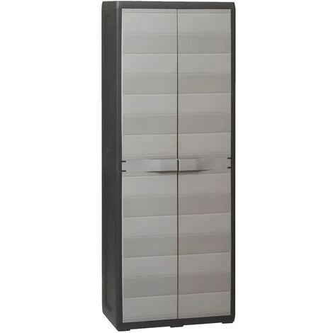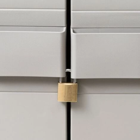 Unser qualitativ hochwertiger Aufbewahrungsschrank ist ideal zum Organisieren und Aufbewahren Ihrer Haushaltswaren, Werkzeuge oder sonstiger Gegenstände im Garten oder auf der Terrasse. Dieser Schrank fügt sich durch sein zeitloses Design in jede Einrichtung ein. Dieser TÜV-GS-zertifizierte Schrank besteht aus robustem, langlebigem Polypropylen (PP). Der geräumige Schrank verfügt über belüftete Regale, die so eingestellt werden können, dass Gegenstände verschiedener Größen darin Platz haben. Der Gartenschrank kann mit einem Vorhängeschloss für zusätzliche Sicherheit abgeschlossen werden (das Schloss ist nicht im Lieferumfang enthalten). Dieser Außenschrank ist sehr einfach zu reinigen. Der Gartenschrank hat ein kompaktes Design und nutzt den begrenzten Platz optimal aus. Der Zusammenbau ist kinderleicht.