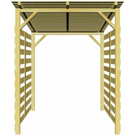 Dieser robuste Holz-Unterstand ist eine praktische, überdachte Holzkonstruktion, die sich bestens zur Lagerung verschiedenster Gartenutensilien, wie Feuerholz, größere Gartengeräte, Gartenmöbel, Fahrräder oder anderer Gegenstände, die Sie gerne im Außenbereich aufbewahren möchten, eignet. Die langlebige Gartenüberdachung ist aus hochwertigem, imprägniertem und somit fäulnisresistentem Kiefernholz gefertigt. Das geneigte Holzdach sorgt dafür, dass Ihr Eigentum stets vor Regen und Schnee geschützt bleibt. Die beiden Seitenwände bietet zusätzlichen Schutz vor Witterungseinflüssen. Der Zusammenbau ist einfach. Bitte beachten Sie, dass Holz ein Naturprodukt ist und somit Unvollkommenheiten aufweisen kann.